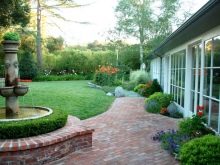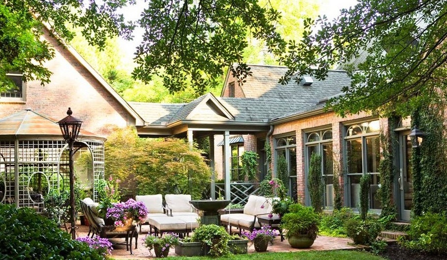 English style can be described as a synonym for restraint. The main task is to preserve the natural nature in a more well-groomed form. Hedges and arches with ivy and grapes fit perfectly into the hilly terrain with rough paths. Reservoirs may be irregular natural shape. Also ideally complement the composition of blooming flower beds and colorful bushes near the house.