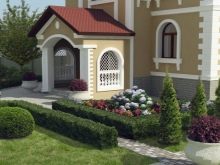 - The location of buildings and other buildings. It is important that the style of the house with a porch fit into the landscape design.
