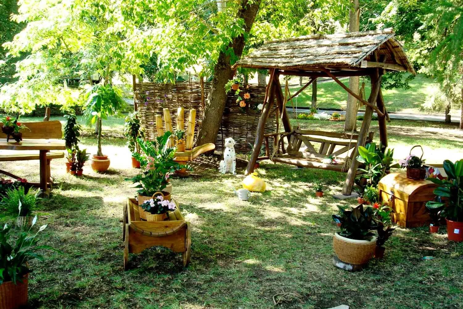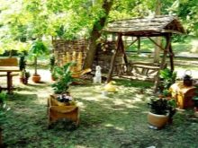 The site can be supplemented with original elements: clay pots, wooden wheel, decorative mill, wicker fence of willow.