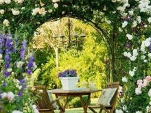 Be sure to plant lavender on the plot - it will fill the garden with a delicate and delicate aroma. For this style it is recommended to use light shades when decorating the walls of the house and arbors. The fence and pergola can be covered with ivy or grapes.