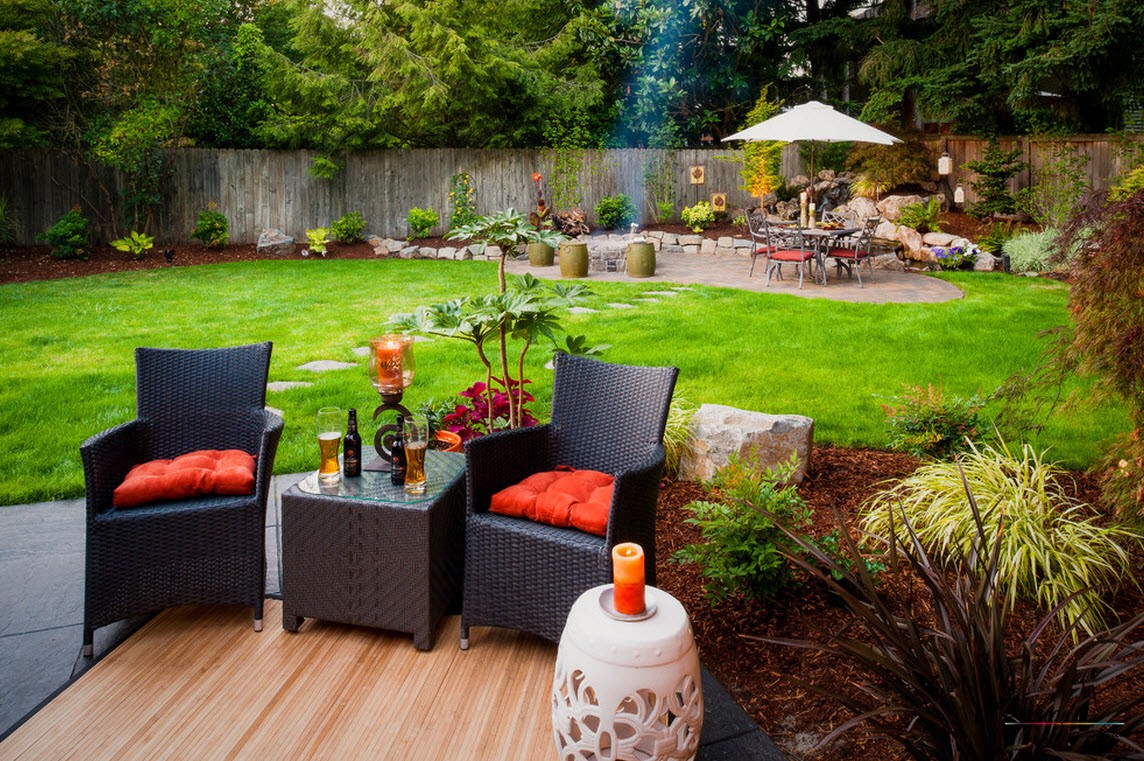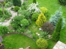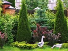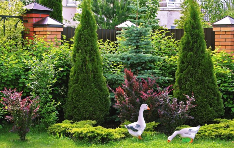 Not the last role is played by coniferous and deciduous trees and bushes. Evergreens such as cypress, thuja, juniper, yew are super popular. They do not grow very high and do not give a large shade, which is especially important for a small plot. With the help of clippers, they can be given almost any shape.