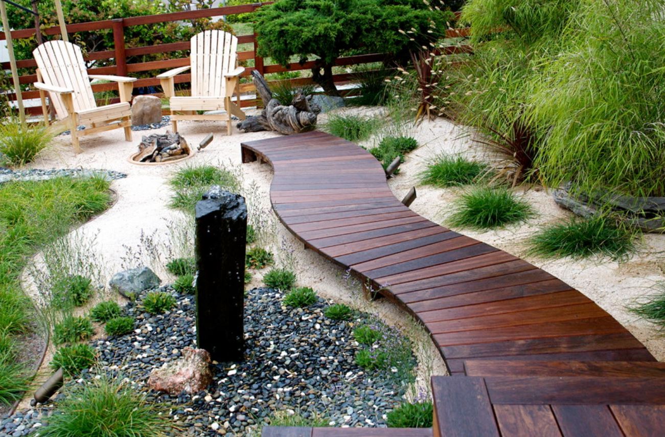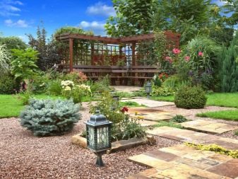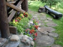 When creating paths, flower beds and decorative elements, preference is given to natural materials: wood, sand or stone.