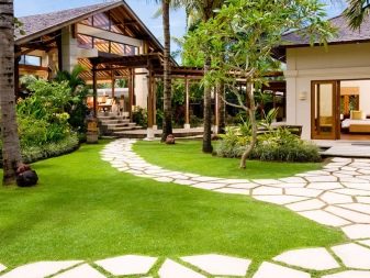 Mandatory part of any site is the lawn. This is not just a decorative element, as the grass absorbs excess moisture and dust, but instead gives freshness and purity. The lawn is selected based on the purpose of the lawn. If you leave the usual weed greens, the territory will look sloppy and disharmonious. At one site in different zones, you can use different types of lawn.