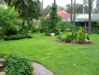 A garden lawn is suitable for landscaping in the shade of the plot. If you are new to landscape design, then in the first year it is better to use the universal option - it is less demanding to care, and also maintains a beautiful and neat appearance for a long time. You can use ready-made lawns - they quickly bring the plot in order.
