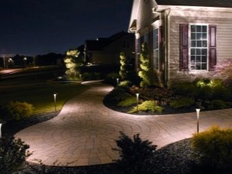 - Lighting the site performs two main functions: it allows you to decorate the area at night and to secure movement at night. Therefore, it is very important to consider lighting the entrance areas, steps, railings and paths.