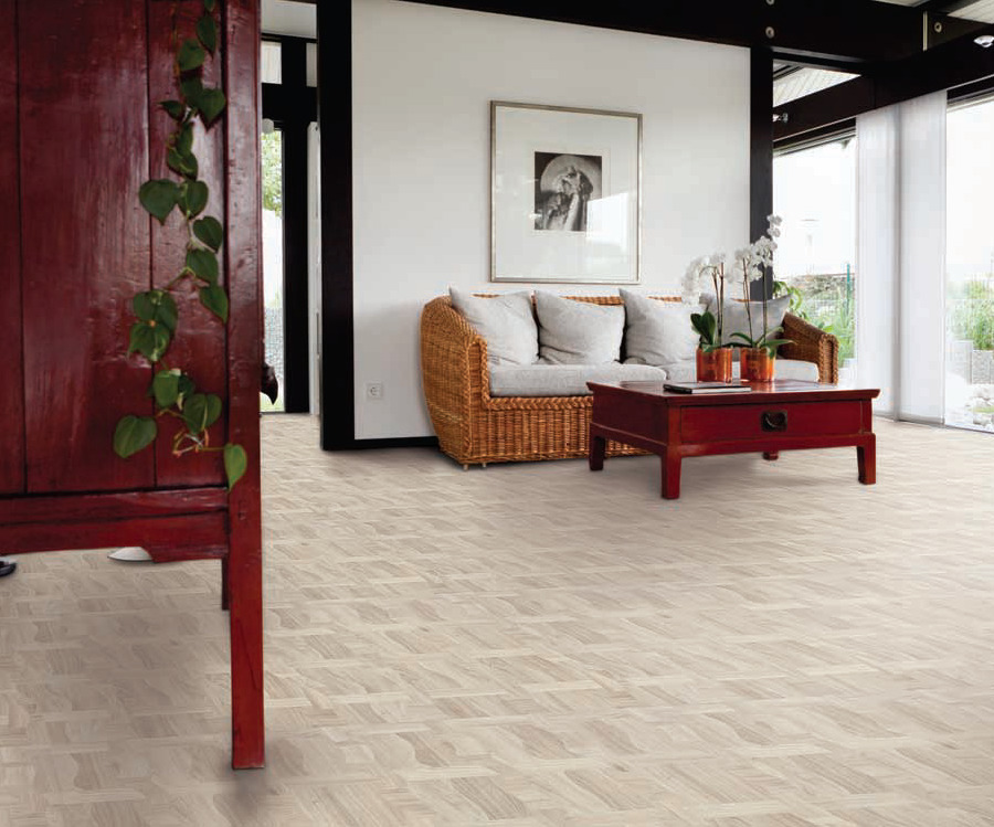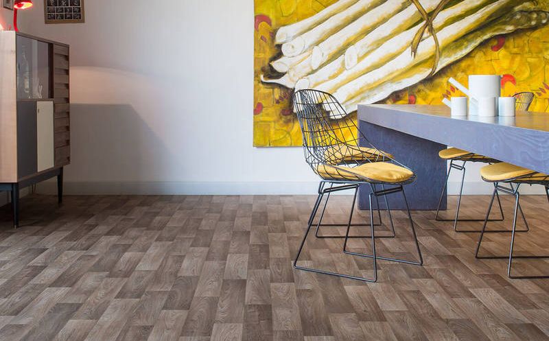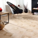 - Texmark - imitates expensive woods, ceramic tiles. It has a non-woven base and resistance to stress on furniture and chemical attack.