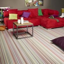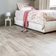 Some of the types of such material can fall on a special glue, fixing it securely on the floor, thus avoiding the formation of kinks and waves, for example, at the points of contact between furniture wheels and the floor. Other species fall on the entire surface as a single segment without any additional funds, without having unnecessary joints and gaps in their surface.