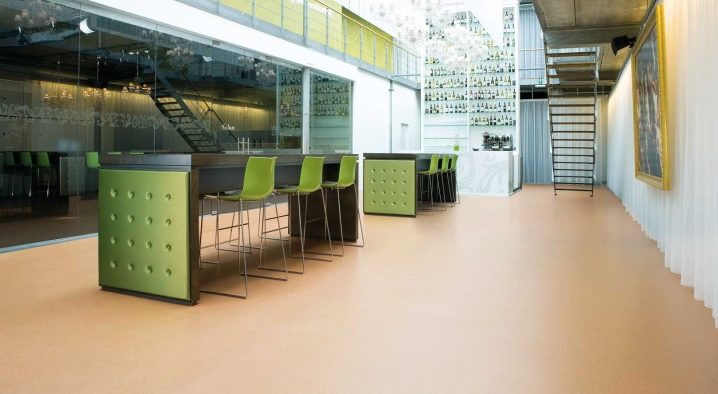 Components may be added that make it more attractive for certain conditions and requirements. The exception is homogeneous linoleum, which is a uniform coating throughout the thickness. It is more often used for floors in rooms of average and big passability.