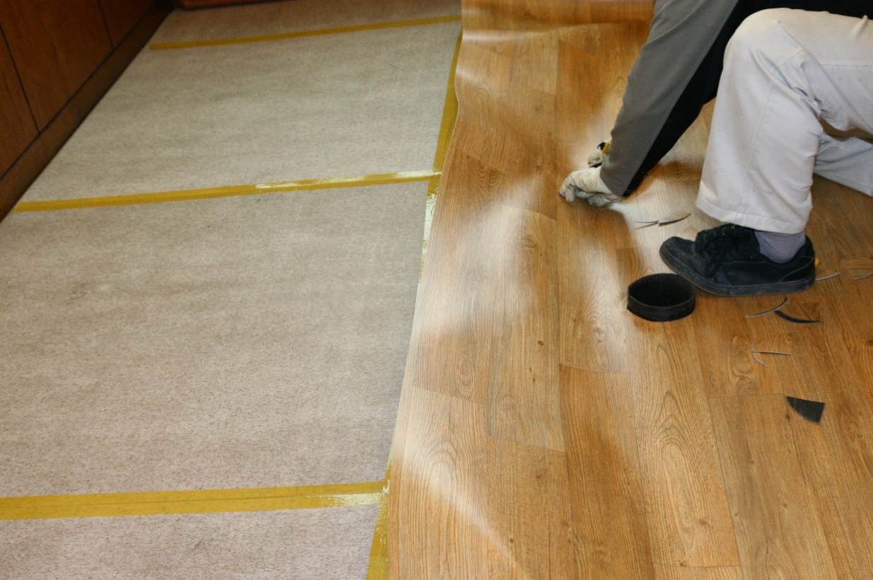 - With the use of glue. Here the sheet of linoleum is simply coated with glue.