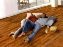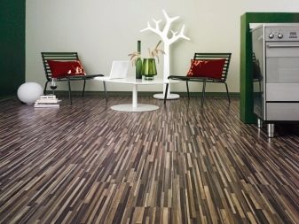 There is one more key difference of linoleum with such imitation from its other types. It is the correct installation. The floor covering imitating laminate panels, is put in pieces, but not a whole cloth. It is this kind of laying that allows to imitate the floor limanat correctly and beautifully.