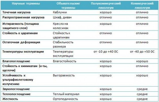 According to this classification, the higher the indicator of each characteristic, the more durable linoleum itself will be in use.