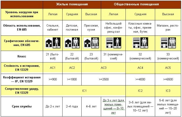 - It is necessary to acquire only the coating that fully corresponds to the place of installation in accordance with its marking, only in this case, you can be sure of the quality and durability of the future floor.
