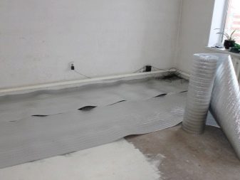 If the repair is on the first floor of an apartment building with an unheated room downstairs or a private house, then you must first take care of waterproofing. To do this, polyethylene is spread on the concrete surface, and the sides are fixed with adhesive tape.
