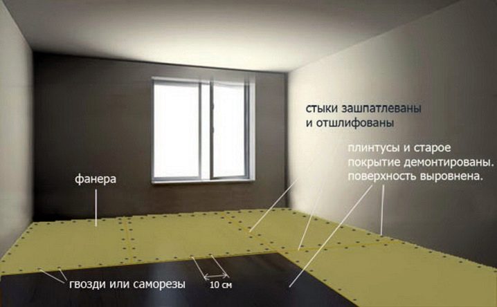 First you need to carefully examine the cement or wooden base. Installation is always carried out only on a clean and level surface. To the substrate is well strengthened, it is necessary to vacuum the floor, and then get rid of the irregularities with the help of special mixtures.