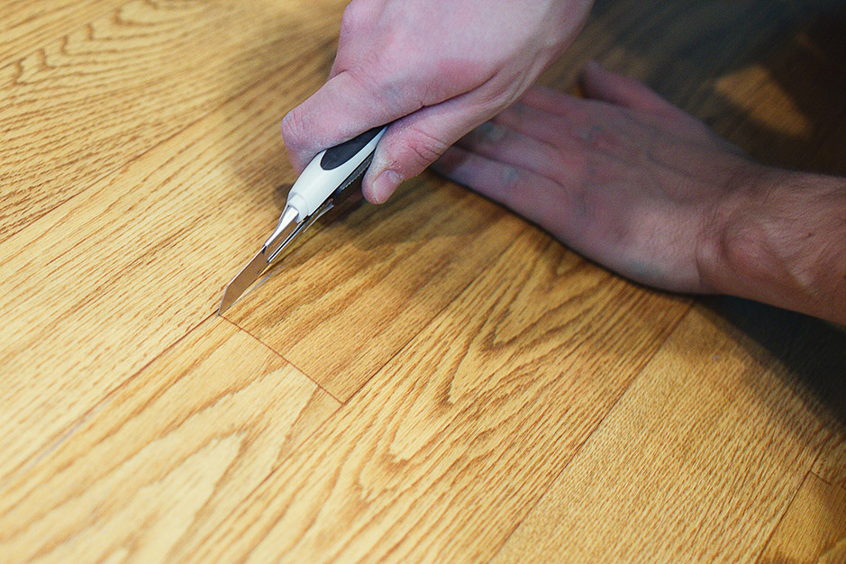 For trimming, you'll need a sharp paint knife and a set of blades. Do not rush, it is better to divide the process into several successive stages. First you need to cut large pieces of excess material. Only then proceed to a more accurate trimming of linoleum along the walls. Ideally, if you end up with a gap between the floor and the wall, which does not exceed 1-1.5 centimeters. Be very careful, but do not worry if you have captured too much.
