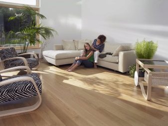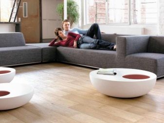 Tarkett linoleum is divided into several types: commercial homogeneous, commercial heterogeneous and household. Each type, in turn, is subdivided into collections, which differ in the style of design, thickness of coating, class of wear resistance.