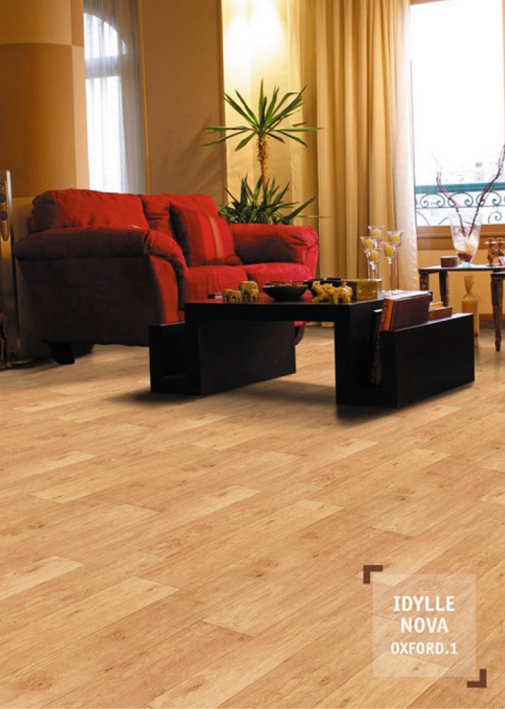 Looks great on the floor in the apartment, has a protective layer thickness of 0.8 mm.