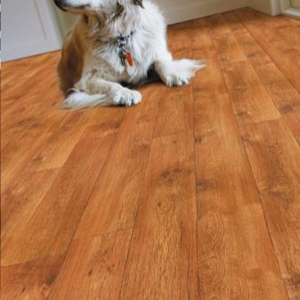 The material is easy to style. Does not require perfect leveling of the floor and a certain care. It is enough to wash it with a soap solution with a small content of detergent twice a week. Well resists temperature and humidity. Linoleum does not swell and does not deform when moisture gets on it.