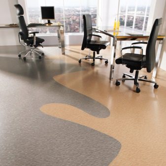 Another special type of linoleum is a product that prevents the spread of electrostatic voltage.This type is recommended for laying in rooms where there is a large number of electrical appliances. Its surface is a poor conductor of electric current, therefore it is a kind of insulator. But in its construction it has copper tapes, which are connected to the ground and divert static voltage accumulated by the floor base.