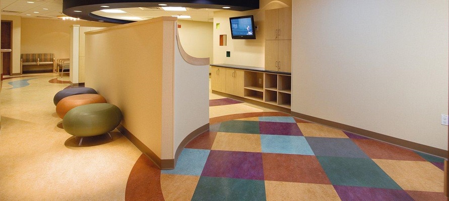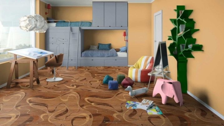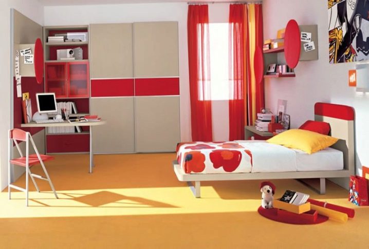 Bright linoleum is not only suitable for laying in the nursery, but will make the original modern design, for example, in the living room.