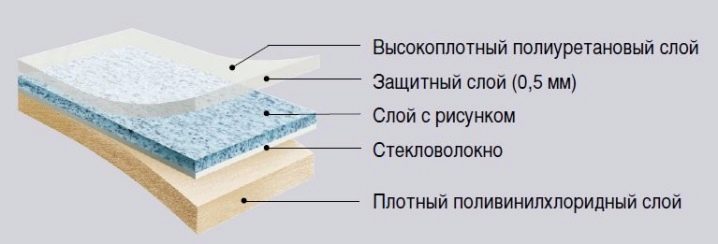 Then there may be a finishing layer in the form of a film on which the manufacturer's logo is applied. This layer is not used on linoleum, the base of which is made of felt.
