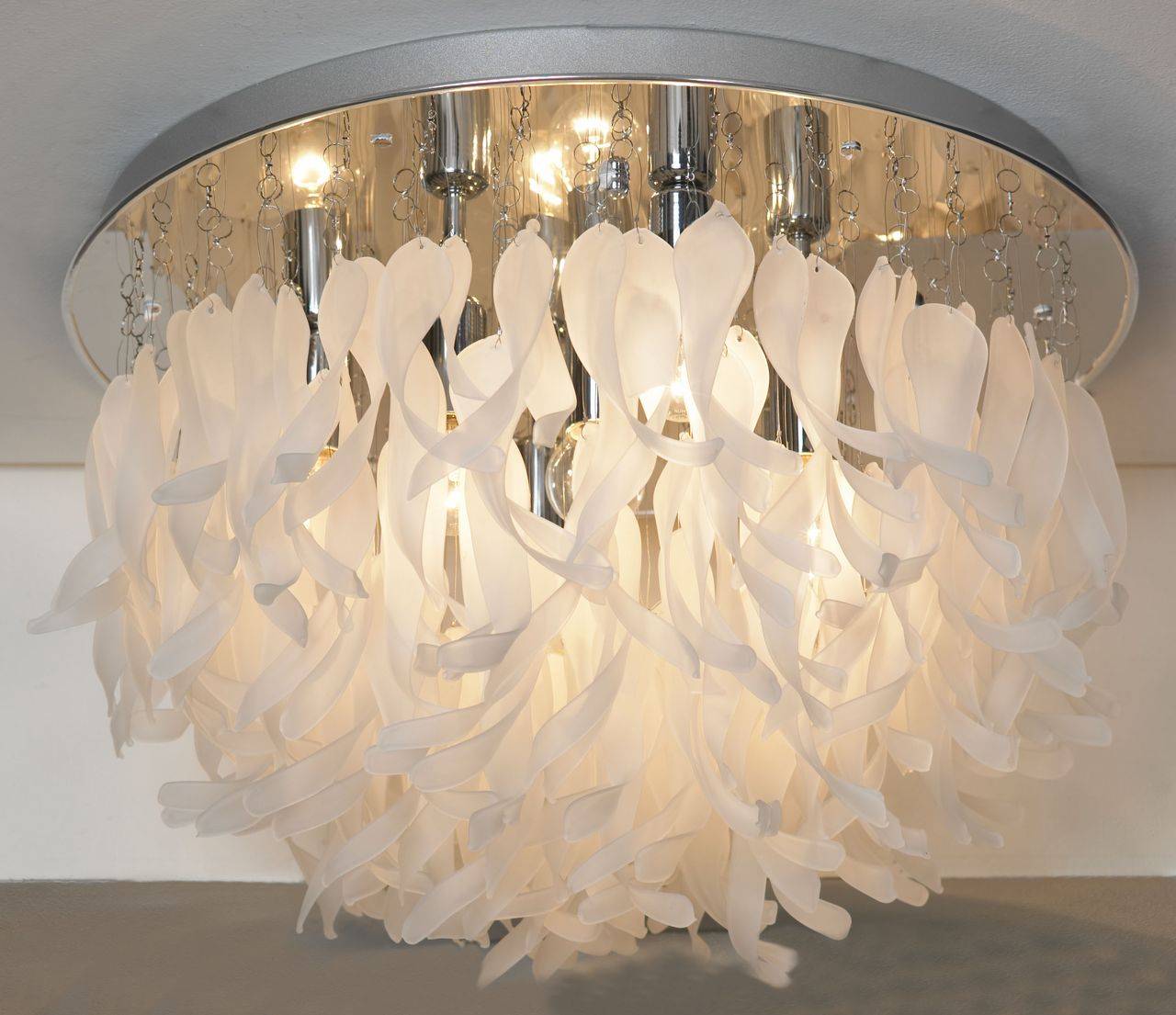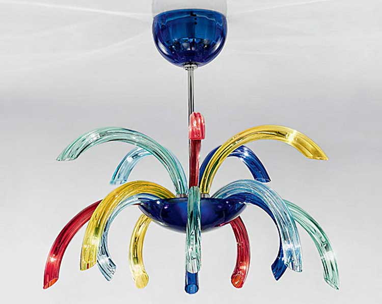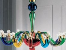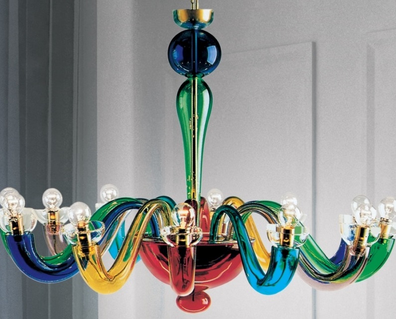 Designer chandeliers made of multi-colored Murano glass, are able to emphasize the diversity of the room's palette.