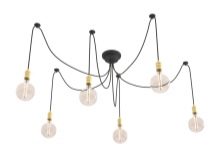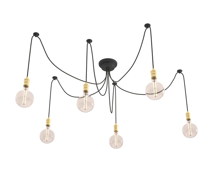 - Spider. The originality of this chandelier fits perfectly into the industrial style of your room. Today this chandelier is a real trend, without exaggeration. The name of the model is due to the external similarity with the spider. In most cases, the chandelier is made in a black shade, equipped with hangers of wires with lamps at the ends. Thanks to the flexible structure, the direction and placement of the light bulbs can easily be changed in the direction you need.