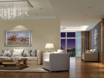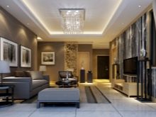 Do not be discouraged if the living room is small in size. After all, for a compact room there are a variety of ceiling chandeliers that succinctly fit into any interior. If your living room is extended, then place two small chandeliers symmetrically.