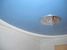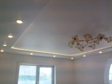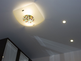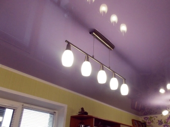 There is a greater variety of chandeliers for a fabric covering, as it tolerates high temperatures better. Fabric fabric in the light of halogen, LED and energy-saving lamps will feel great, while LED lamps are ideal for PVC. When planning, take into account the shapes of chandeliers and lamps. Install the necessary lighting will not be easy.