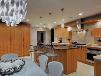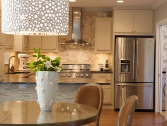 Kitchen. First of all, keep in mind that kitchen lights most often suffer from moisture and pollution. Based on this, pay attention to the chandeliers made of acrylic, metal or glass. Refrain from buying wooden chandeliers with fabric shade.