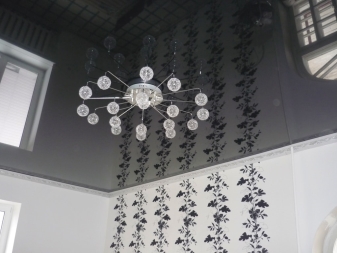 Black chandelier - a touch of gothic and glamor. This lamp looks very appropriate in combination with white elements of decor. It looks very extravagant on a glossy ceiling canvas and will always be the center of attention.