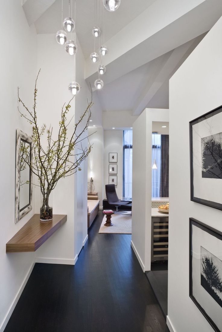 For example, a rectangular or longitudinal chandelier is perfect for a narrow and long space. You can adjust the hallway with the help of spots that will highlight a particular zone.