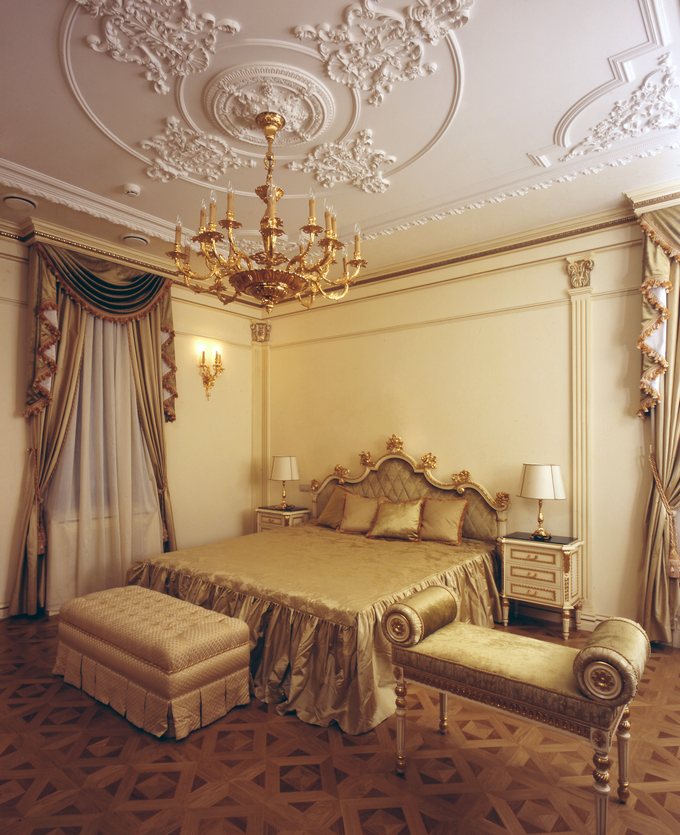 Ceiling decoration plays an important role in the overall aesthetics of the interior.Today there are many options for the decoration of the ceiling fabric. For example, in order to emphasize the chandelier and lamps, apply sockets. This is a decorative element that has a rounded relief form and in most cases is decorated with floral ornament.