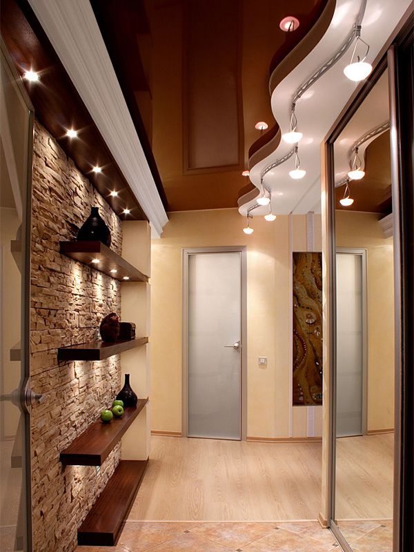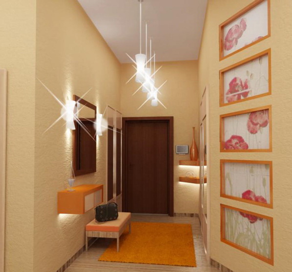 Corridor. The chandelier in the corridor creates the first impression of your home. Therefore, it is very important that the lighting creates a welcoming atmosphere. With the help of lighting, you can easily solve the problem of the small size of the hallway and its unsuccessful layout.