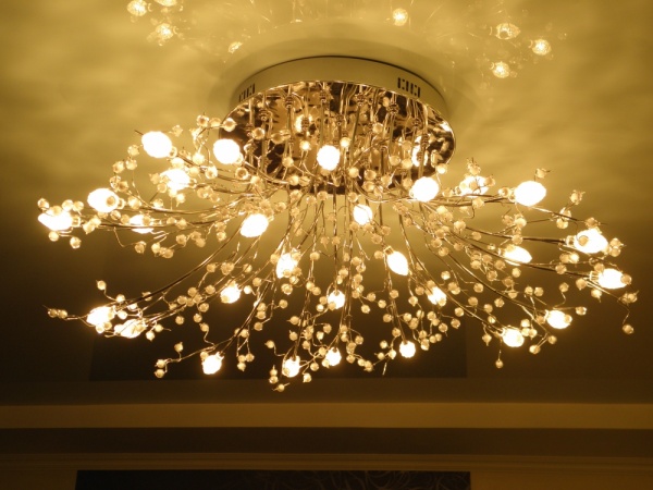Living room. Bright but warm light is your priority for the living room. It is the combination of light and warmth that will make you communicate, improve your mood. A massive chandelier is the best option for a room with high ceilings. It will give the room an atmosphere of solemnity and luxury. Pay attention to the crystal, if your living room is made in a classic style.