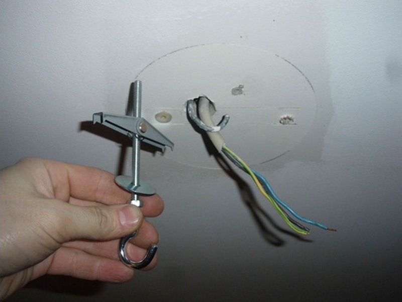 Perhaps one of the most common methods of fastening is a mounting hook. The reliability of this method has been tested over the years. In addition to the anchor hook, you do not need anything. It is customary to adjust the height of the hook in the concrete ceiling, taking into account the adjusting “glass” of the chandelier. If there is no hook for fastening in the ceiling, then it is not difficult to install it yourself. For a secure attachment, use voids in concrete. In the empty channel lay a rod to which the hook is further attached.