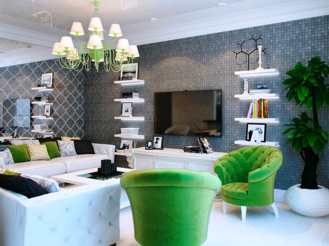 Green lights are a versatile tool for creating moods. Depending on the shade of green interior can be filled with energy and optimism, style and wealth.