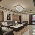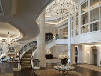 If the space is large enough, the suspended version of crystal chandeliers will be the perfect option.They can be made in the form of one or several tiers, decorated with pendants. The design of such a light fixture is manufactured using a suspension, which often has the shape of a chain. They are placed in halls, living rooms, theater lobbies, office buildings.