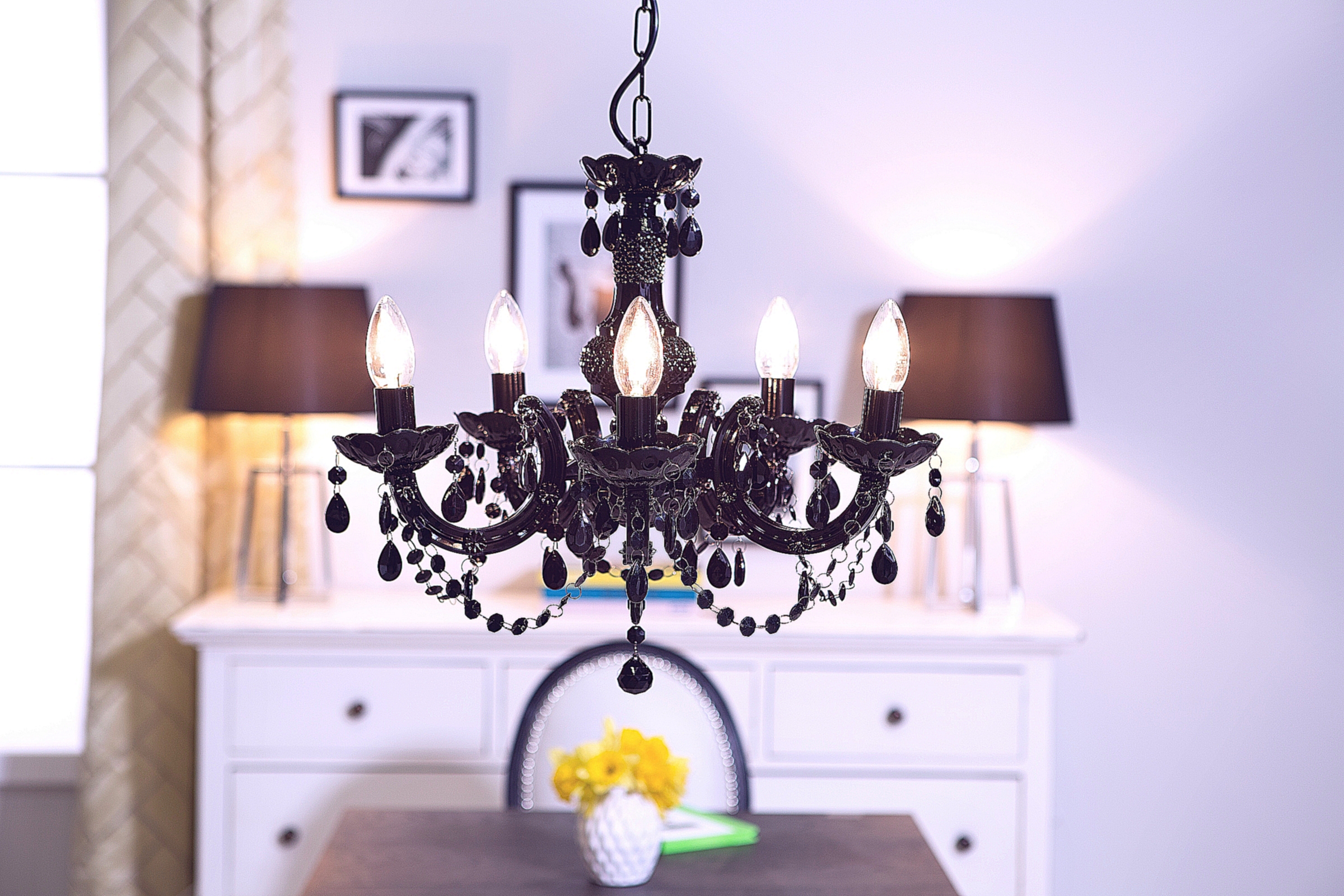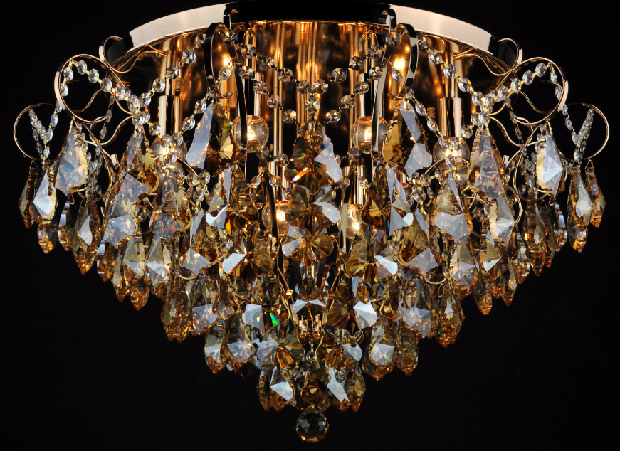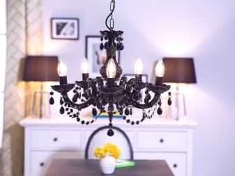 Colored chandeliers have a high value.The most expensive is considered to be black crystal, which is created by processing natural material.
