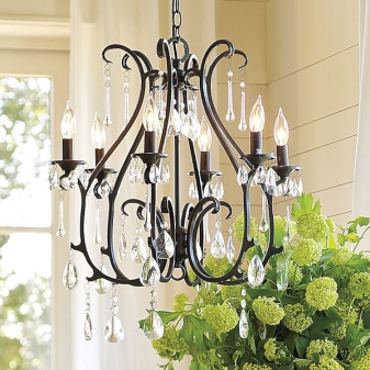 - Efficiency. Chandelier pendants refract light rays, thereby effectively distributing them. Therefore, light bulbs with low power are quite suitable, which will significantly save on electricity.