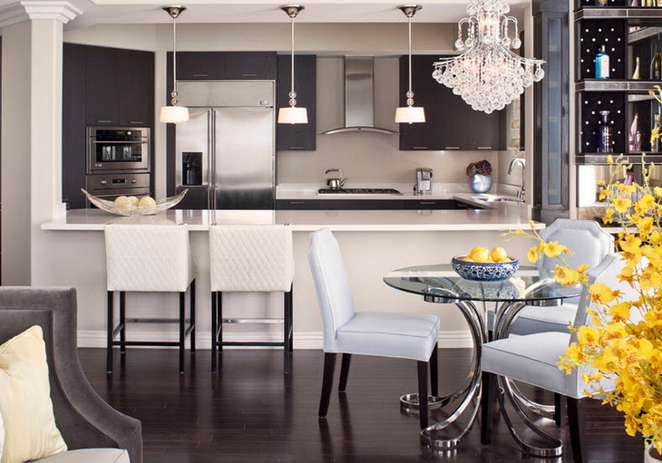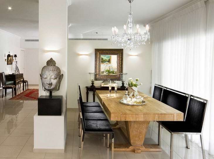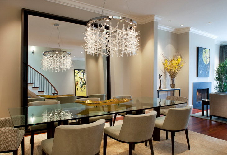 If the dining area is large enough, then the best alternative would be to place a crystal pendant over the table in the dining area.This will give solemnity to any meal.