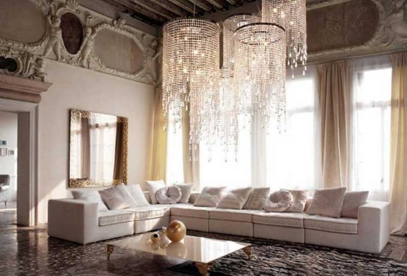 Traditionally, crystal lighting place the living room, where most often the whole family gathers. Such a device will become the central element of the room, will decorate the interior, will give the surrounding solemnity.
