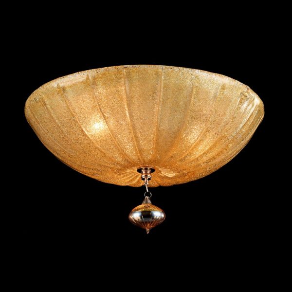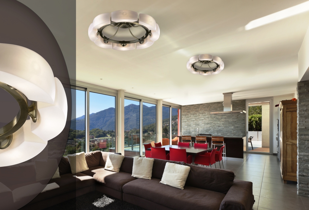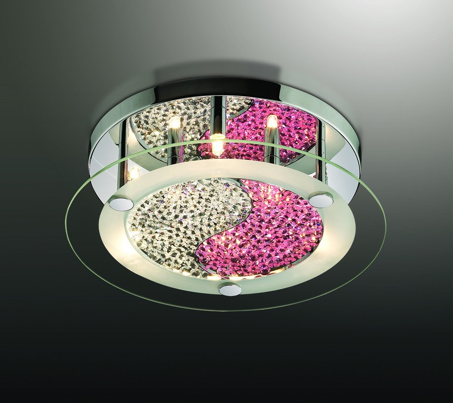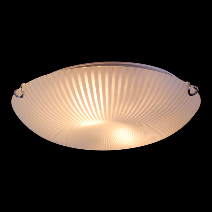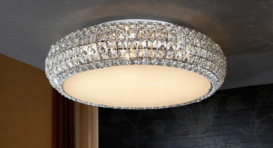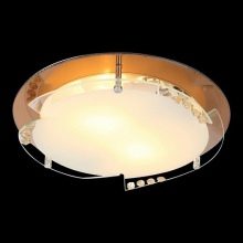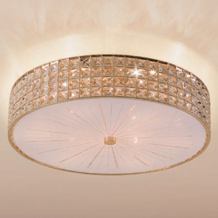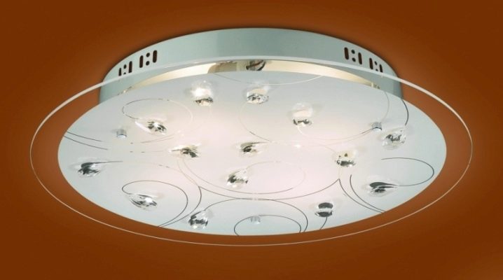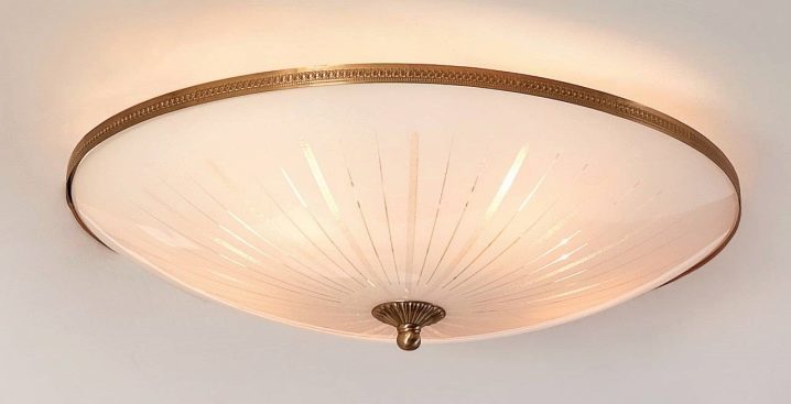 - Overhead Model occur most often, and it is they who, as a rule, resemble a flying saucer in design. They are mounted directly on the ceiling with the help of special locking elements, which are subsequently hidden by decorative elements like a metal disk rim. Such lamps have a round shape and convex spherical ceiling made of glass, plastic, crystal or ceramics.They are the best choice for rooms with low ceilings, as they do not take up extra space;