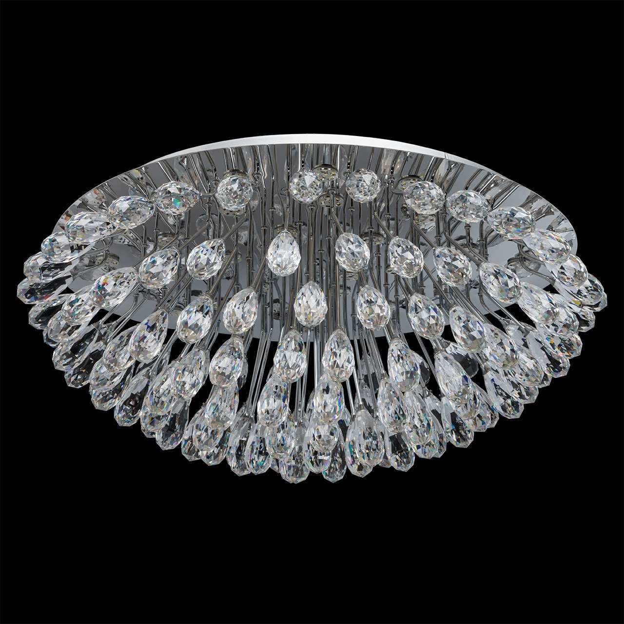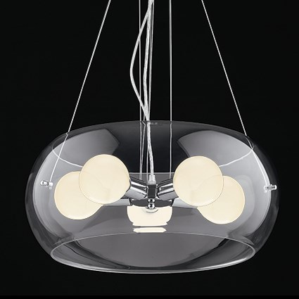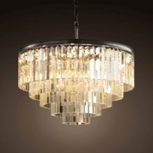 - Fully glass chandelier with transparent shades of similar material or crystal;