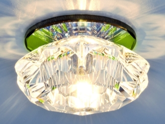 - Embedded. They are the best choice if the room has a suspended or suspended ceiling. In fact, such lamps crash into the ceiling and have a slightly convex circular shape. The lighting element in them is protected by a glass lining. Best suited for lighting small rooms with low ceilings.