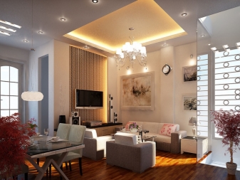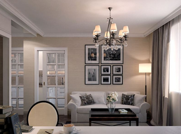 If the room, in addition to the ceiling chandelier, there are other auxiliary elements of lighting, it is best to look at small models. A three-hinged chandelier will be quite enough for a room with an average area.