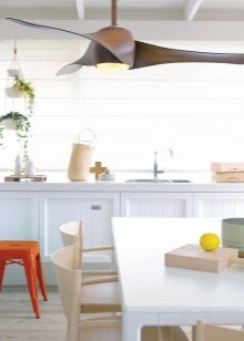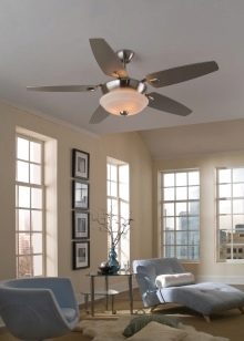 An important aspect is the diameter of the blades. The blowing space will depend on this parameter. If the height of your ceilings is no more than three meters, then it is better to choose a lighting device, the diameter of the blades of which is two and a half times smaller than the blowing area.You should also look at the shade of structural elements. The fan may have a different number of blades. The most optimal is three to six elements.