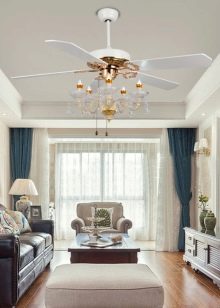 - Chandelier fan suitable for use not only in enclosed spaces. You can install such a device on the veranda, in the gazebos, where you do not install air conditioning.
