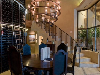 For example, large and pretentious forged lamps, made in the Gothic style, will dip the owners and guests of the house in the Middle Ages. To whom this option is not to their liking, they can choose simple monochromatic products in the form of a cascade. Such lighting devices are suited to minimalism and even high-tech style.