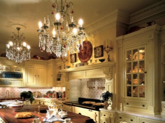 Lamps in the form of candles can not be installed anywhere. Firstly, their weight and massiveness do not allow mounting suspensions in rooms with low ceilings. A large light fixture will visually reduce the space.